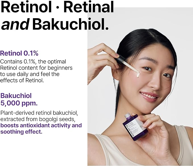 Triple Retinol Complex: Retinol + Retinal + Bakuchiol work together for maximum anti-aging power